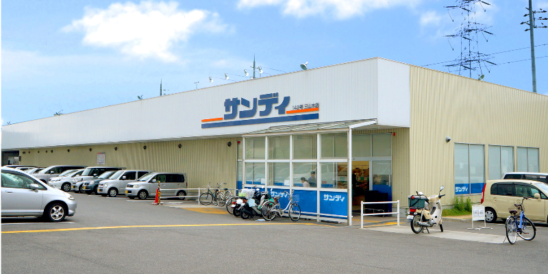 JR「三山木」駅まで徒歩11分。駅前にはスーパーマーケット「サンディ」や